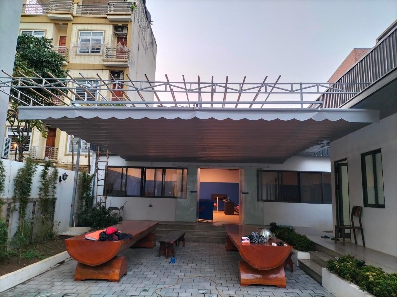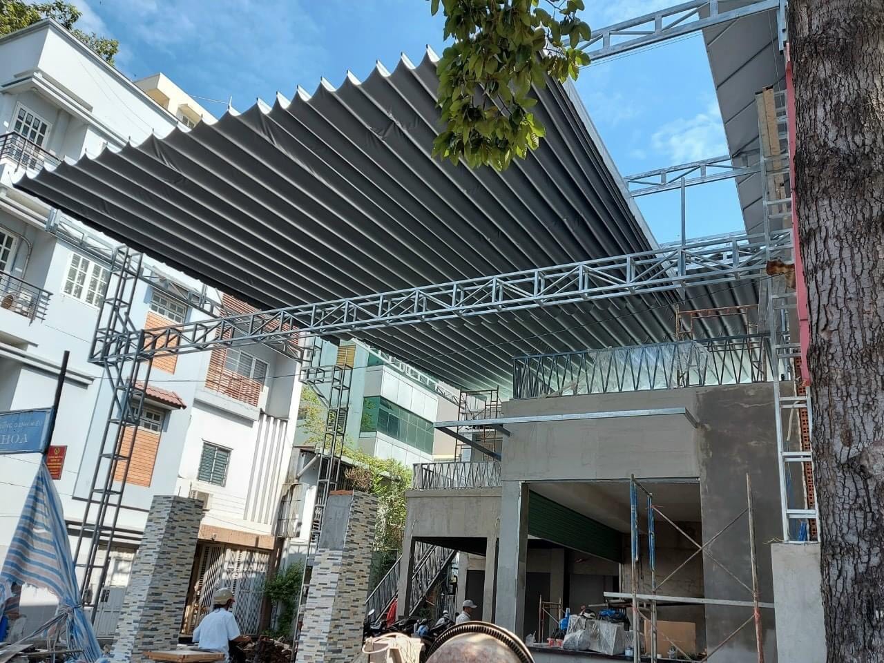 Qúy khách hàng đang cần lắp đặt các mẫu mái xếp lượn sóng, mái hiên di động giá rẻ TÂN CƯƠNG để thay mới mái hiên hoặc các loại vải bạt che đã hư hỏng? Hãy đến với TÂN CƯƠNG để được tư vấn lắp đặt, sửa chữa các mẫu mái hiên đẹp, mái hiên di động giá rẻ, mái xếp di động để che nắng che mưa cho cửa hàng, quán nhậu, bể bơi, công viên,...
